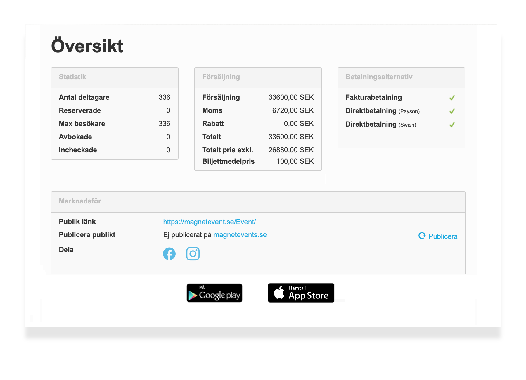 Med Magnet får du upp en anmälningssida inom några få minuter, och kan börja ta emot dina gästanmälningar. Här på bilden intill ser du hur sidan ser ut utan innehåll och design. Nu är det bara att börja. Du klickar direkt på olika delar sidan för att ändra och fylla på med innehåll.